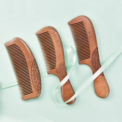 天然雕花桃木梳子