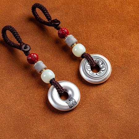 999纯足银汽车钥匙扣 平安扣挂件饰